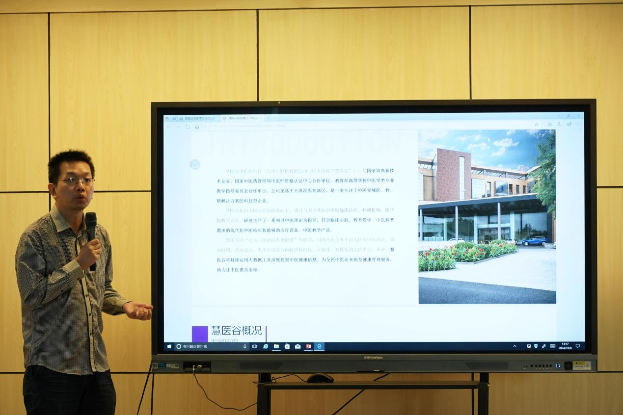 此次活動還邀請我市高新企業慧醫谷中醫藥科技(天津)股份有限公司做客沙龍。產品部經理陸明明介紹了公司產品規劃、知識產權、發展前景等,就校企合作專業領域和意向進行交流探討,以發揮產學研結合優勢、助推校企創新發展。