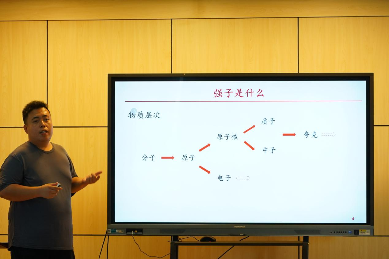 劉名聲以“全粲四夸克態的研究”為題,介紹了強子物理學的研究背景,對強子、夸克、強相互作用等基本概念進行了說明。基于實驗上陸續發現的X(6500)、X(6900)、X(7200)等粒子,介紹了基于夸克模型對全粲四夸克基態以及激發態的譜學研究的最新進展。