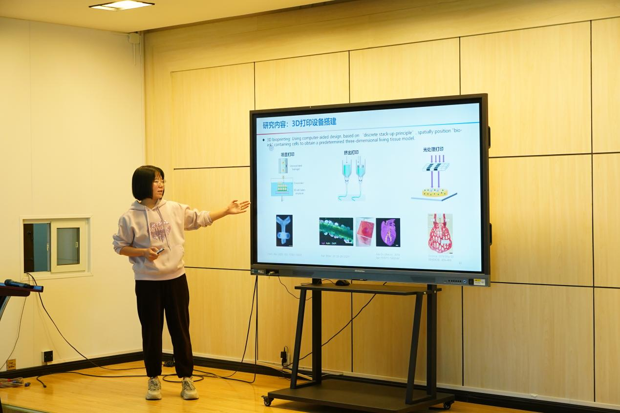 梁少君匯報了基于生物3D打印的人肺模型構建及應用研究,利用生物3D打印技術構建人工組織模型,通過對打印參數、材料物理化學性質以及細胞流變特性等因素的研究,搭建了雙層水凝膠微球制造系統和可負載高密度細胞的DLP打印系統。模型有望用于組織器官移植、生物醫藥和毒理學等領域。