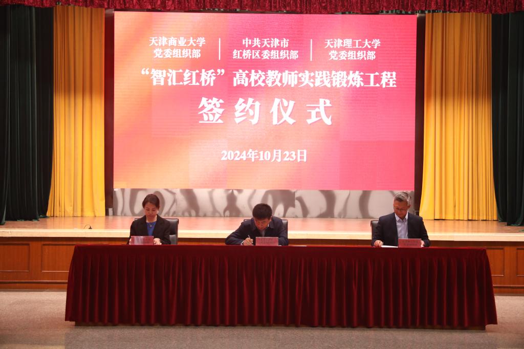 會上,黨委組織部與紅橋區委組織部簽署高校教師實踐鍛煉合作協議。雙方表示將進一步增進共識、緊密聯系,在招才引智、科技創新、產業發展等方面加強合作,交流共建,打造校地合作新典范。