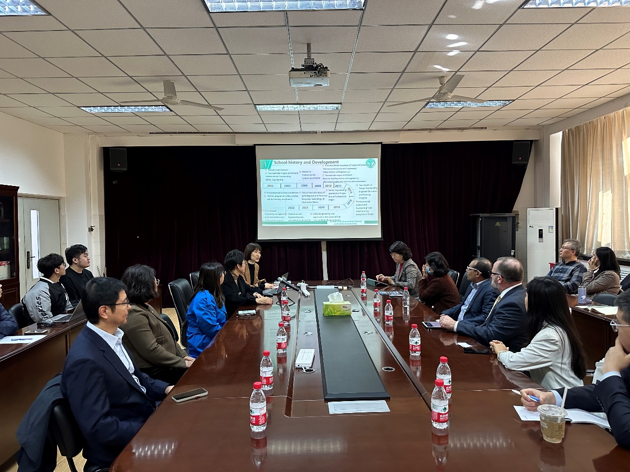 11月4日,中國教育國際交流協(xié)會(huì)中美教育交流項(xiàng)目代表團(tuán)由中教國際教育中心副主任吳琴率隊(duì)和美國馬薩諸塞州大學(xué)達(dá)特茅斯分校、馬里蘭大學(xué)東岸分校、威斯康星大學(xué)歐克萊爾分校等校方代表一行10人到訪我校,就未來與我校開展聯(lián)合培養(yǎng)項(xiàng)目進(jìn)行交流。我校國際交流處負(fù)責(zé)同志陪同代表團(tuán)參觀訪問了機(jī)械工程學(xué)院、環(huán)境科學(xué)與安全工程學(xué)院、管理學(xué)院,并舉辦合作交流座談活動(dòng)。