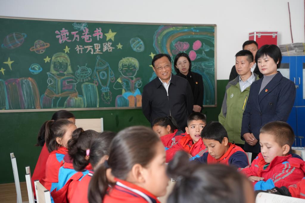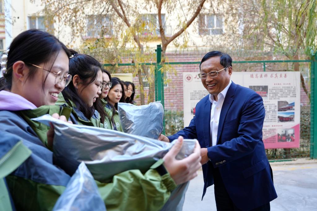 11月5日上午,劉東志一行來到新疆和田地區于田縣第一高級中學走訪調研,深入研究生支教團志愿者辦公室、宿舍等地了解工作和生活情況,發放暖冬慰問品,并參觀天津理工大學民族團結教育協同育人基地、愛心書屋、明理廣播站,觀看師生共同演繹的合唱作品《同心結》和原創“天津援疆”快板作品《援疆頌》。