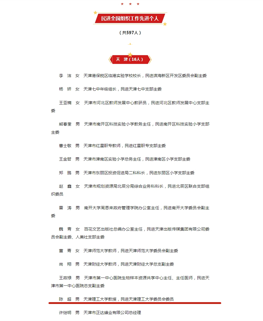 日前,民進中央和致公黨中央先后召開全國組織工作會議,對先進集體和優秀個人進行表彰。我校民主黨派成員堅持以習近平新時代中國特色社會主義思想為指導,積極建言資政、扎實履職作為,表現突出、喜報頻傳。校致公黨支部主委、管理學院院長王京濱榮獲“中國致公黨優秀黨員”榮譽稱號,校民進基層委員會委員、電氣工程與自動化學院教授陳超榮獲“民進全國組織工作先進個人”榮譽稱號。