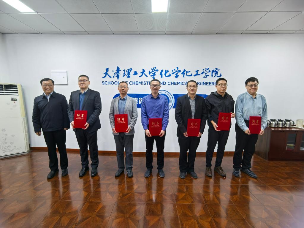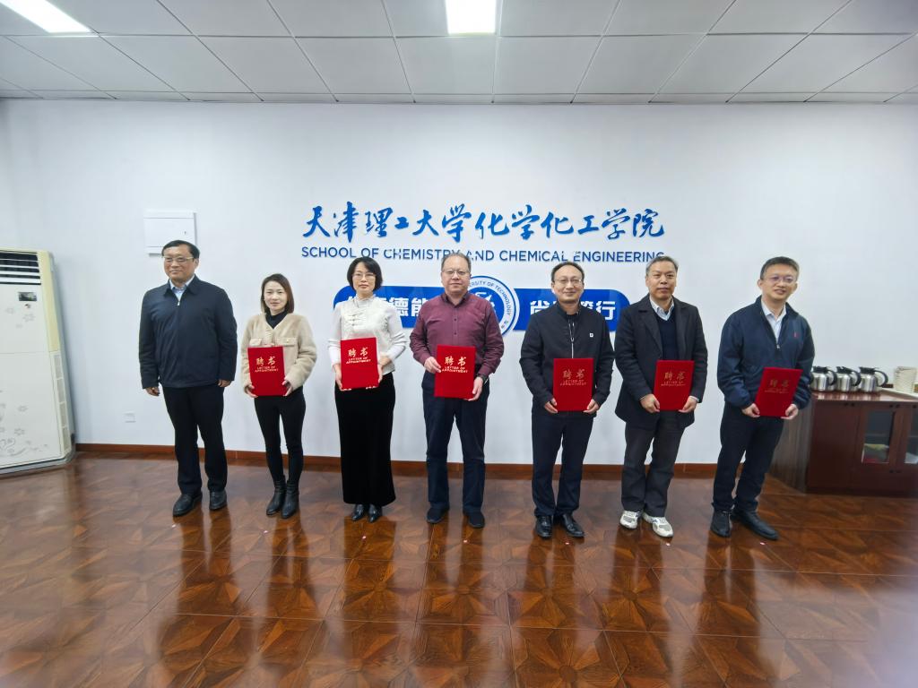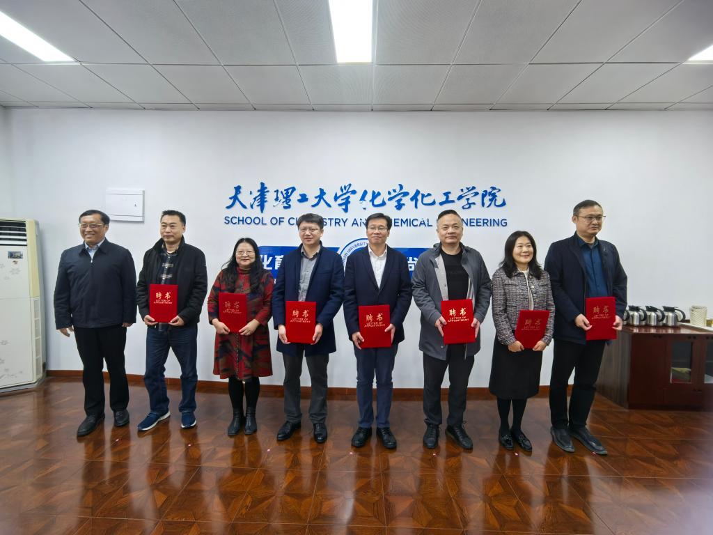 校黨委書記劉東志為天津市普通高等學校對接產業鏈綠色石化類本科教學指導委員會的專家、委員代表頒發聘書。