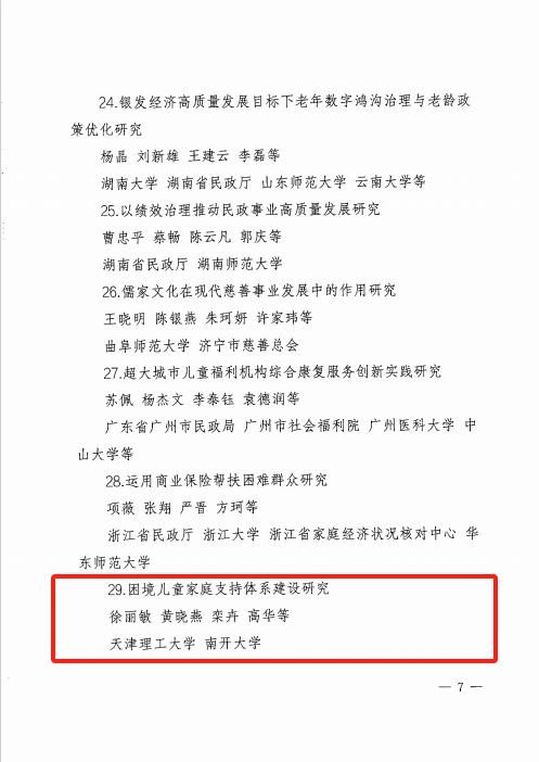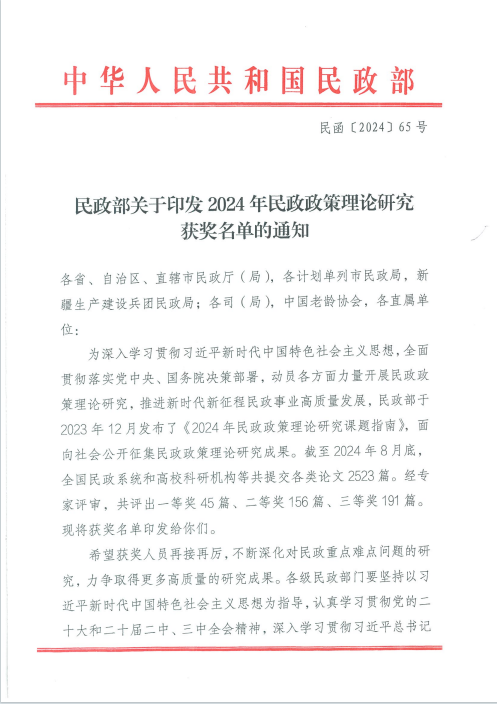 日前,社會(huì)發(fā)展學(xué)院院長(zhǎng)徐麗敏教授的論文《困境兒童家庭支持體系建設(shè)研究》,榮獲民政部2024年政策理論研究成果一等獎(jiǎng)。