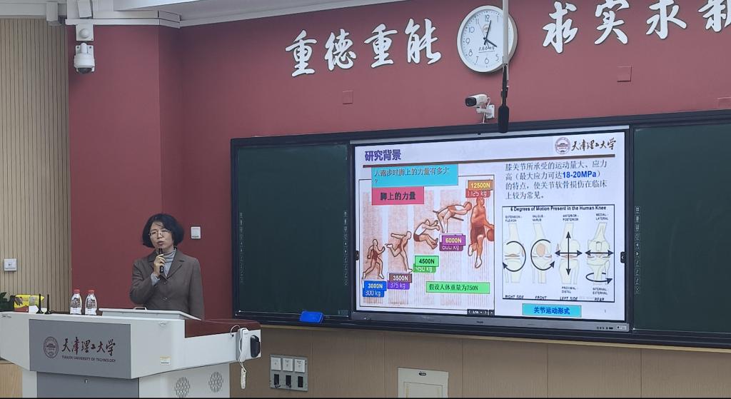 學校機械工程學院高麗蘭教授作題為《關節軟骨缺損修復的力學行為研究》的學術報告。基于力學載荷下關節軟骨缺損會影響軟骨的力學功能,加速軟骨的損傷的研究背景,她針對軟骨不同缺損程度建議采用的干預修復方法,闡述了體外組織工程成熟培養后修復關節軟骨缺損的必要性。