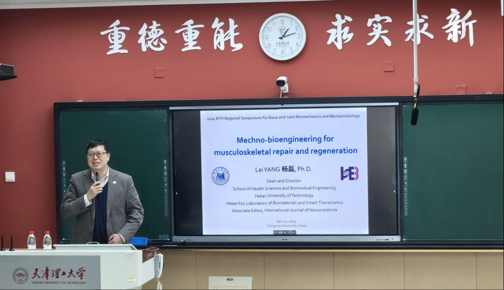 河北工業大學楊磊教授作題為《Mechano-bioengineering for Musculoskeletal Repair and Regeneration》的學術報告。他從材料學的背景闡述了力學生物學新理念,強調人體時刻承受力的作用,精準的組織修復與再生需要考慮力學生物學調控。