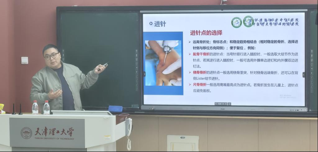 天津濱海新區中醫醫院骨傷科段立強作題為《金針復位技術》的報告。他表示,金針復位是以古法“金針撥骨”理念為指導的一項增加復位效能的技術,是對正骨八法復位能力的補充。金針復位基本技法包括:“彎針”“進針”“行針”“旋針”“頂針”等,可使骨折端達到近解剖的復位。