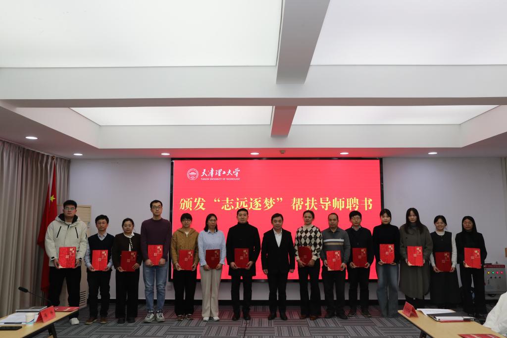 與會(huì)領(lǐng)導(dǎo)為就業(yè)幫扶導(dǎo)師代表頒發(fā)聘書,為參會(huì)學(xué)生代表贈(zèng)送愛(ài)心大禮包。