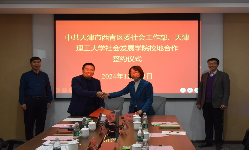 座談會后,我校社會發展學院同西青區委社會工作部共同簽署合作協議。