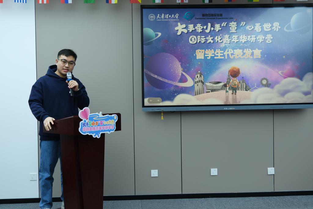 結營儀式上,學員代表趙藝媞表示,本次活動既富有趣味性又充滿科學探索,為本人打開了一扇了解世界的窗口,極大地拓寬了國際視野,并結識了許多志同道合的朋友。國際學生代表,來自馬來西亞的學生許添坤認為,一個月以來,研學營活動為不同國家文化的展示和交流提供了平臺,在參與過程中得到了鍛煉。國際學生代表為學員們頒發(fā)結業(yè)證書。