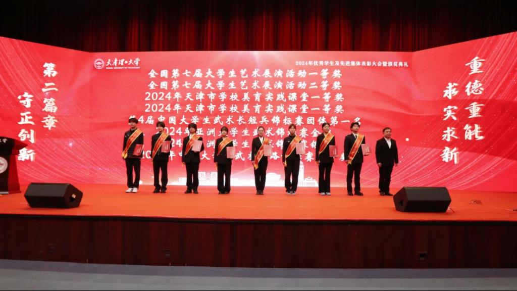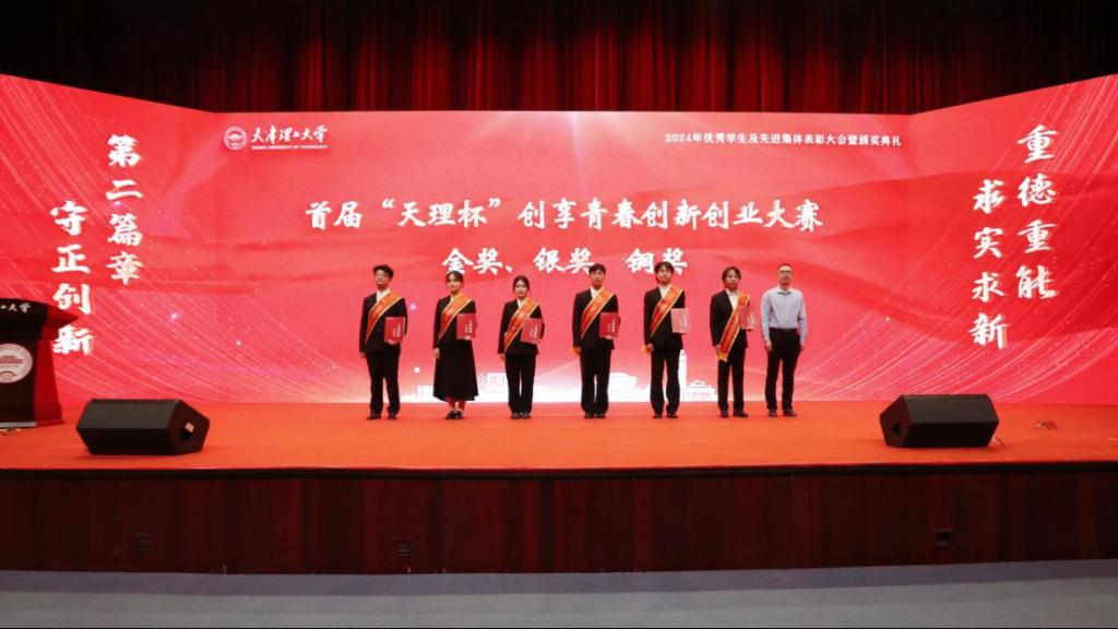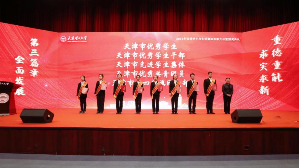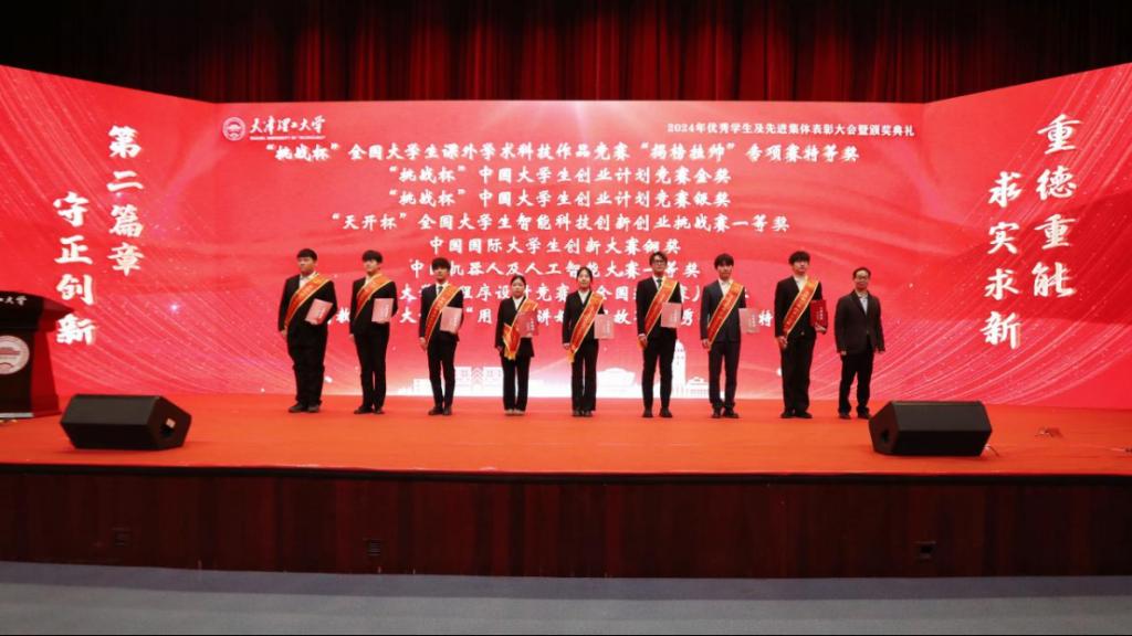 校黨委副書記、校長練繼建為天津市人民政府獎學金、天津市王克昌獎學金、天津市海河自強獎學金、天津市自信自強年度人物、天津市大學生年度人物提名獎獲獎代表頒獎。