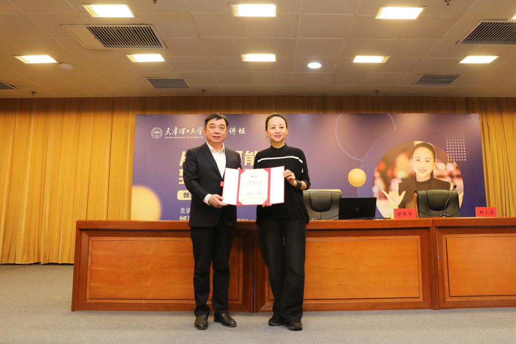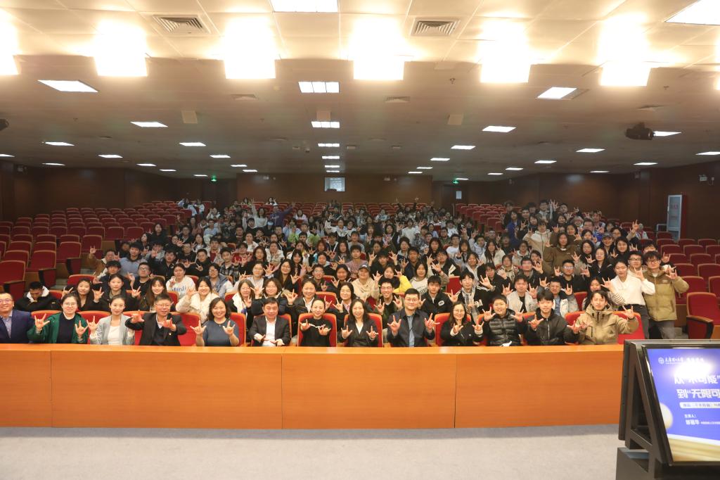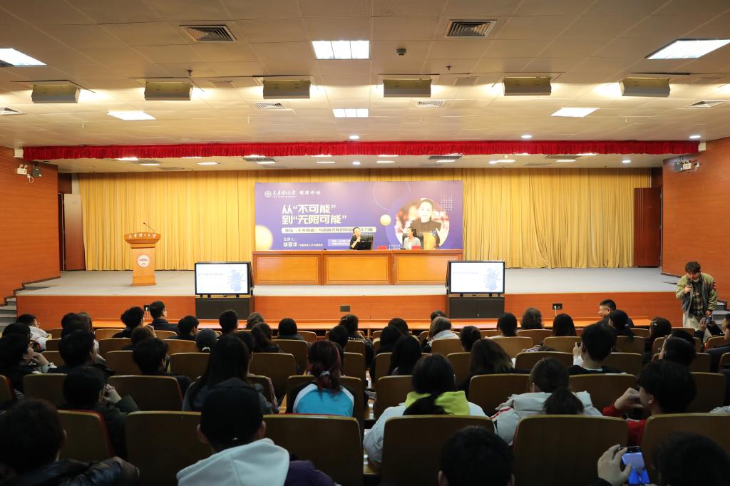 報告會前,葉寧為邰麗華頒發了聘書。邰麗華帶領大家回顧了中國殘疾人藝術團成立38年來的發展歷程。她表示,從最初的僅有幾名成員,到如今登上聯合國總部、北京奧運會、央視春晚等國際舞臺的“特殊藝術名片”,藝術團始終以“展現生命的尊嚴與價值”為使命。她特別提到舞蹈《千手觀音》的創作故事。21名聽障演員通過手語老師的指揮和地面的振動感知節奏,以千余次排練達成精準配合,最終在2005年春晚驚艷世界。她還分享了人工智能技術如何推動藝術普及與無障礙傳播。作為顧問,她與團隊一起讓今年蛇年春晚的無障礙轉播覆蓋全國31個省份,為藝術插上翅膀,讓更多“不可能”成為可能,引發廣大師生共鳴。