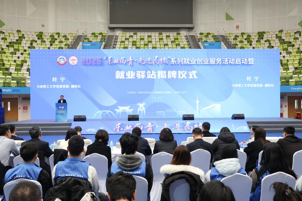 招聘會(huì)現(xiàn)場(chǎng)同步開(kāi)展2025年“樂(lè)業(yè)西青·走進(jìn)高校”系列就業(yè)創(chuàng)業(yè)服務(wù)活動(dòng)啟動(dòng)暨就業(yè)驛站揭牌儀式。葉寧表示,學(xué)校和西青區(qū)在產(chǎn)學(xué)研合作、人才培養(yǎng)、就業(yè)創(chuàng)業(yè)等方面形成了優(yōu)勢(shì)互補(bǔ)、共建共享的良好合作態(tài)勢(shì)。本次活動(dòng)是新形勢(shì)下校地、校企共同發(fā)展、共建人才培養(yǎng)新模式的重要舉措,希望雙方能夠以此次活動(dòng)為契機(jī),持續(xù)探索校地企合作新領(lǐng)域、新途徑。啟動(dòng)儀式上,學(xué)校黨委學(xué)生工作部與李七莊街道辦事處進(jìn)行了“就業(yè)驛站流動(dòng)服務(wù)點(diǎn)”簽約,并與天津青奧華陽(yáng)科技有限公司現(xiàn)場(chǎng)簽訂專項(xiàng)創(chuàng)業(yè)服務(wù)協(xié)議。