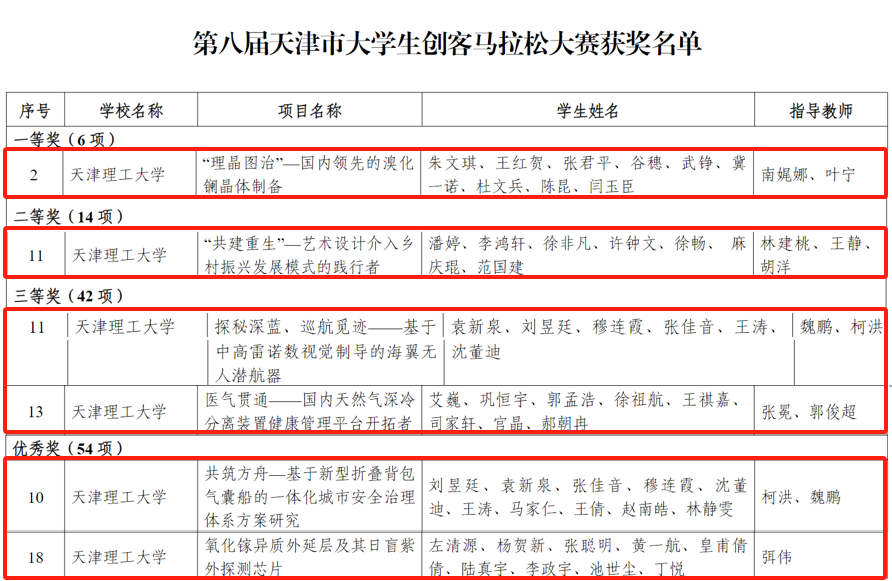 近日,第八屆天津市大學生創客馬拉松大賽總決賽結果揭曉。我校創新創業團隊在本屆大賽中勇奪佳績,斬獲一等獎1項、二等獎1項、三等獎2項、優秀獎2項,實現了我校在該項賽事中獲獎數量及獎項的新突破。