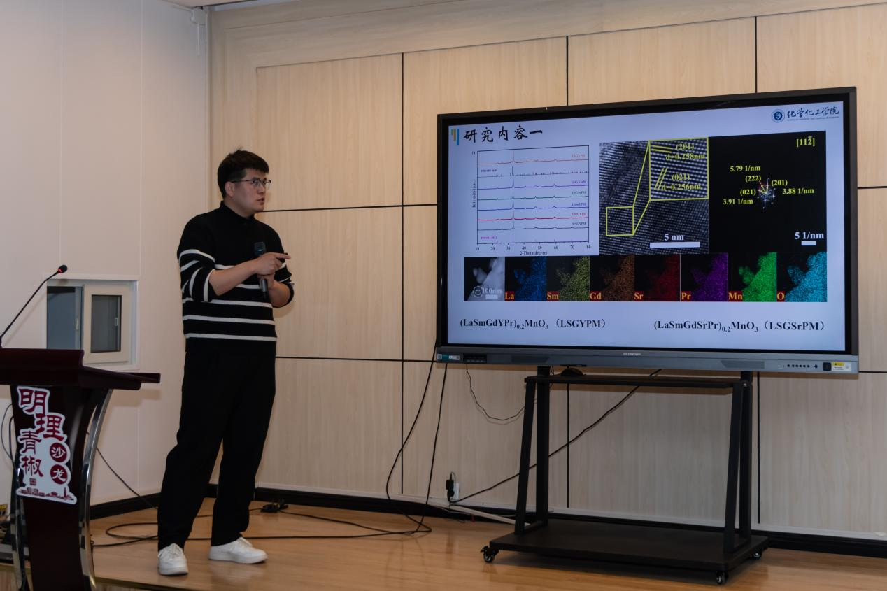 許林成作題為“Sr2+局部調(diào)節(jié)高效激發(fā)高熵ABO3氧電催化劑的活性中心”的報告。他系統(tǒng)分析了新型高熵鈣鈦礦催化劑的合成過程,并通過多種表征測試,研究了Sr2+調(diào)控對高熵鈣鈦礦表面狀態(tài)的影響規(guī)律及其與氧電催化性能之間的“構(gòu)-效”關(guān)系。