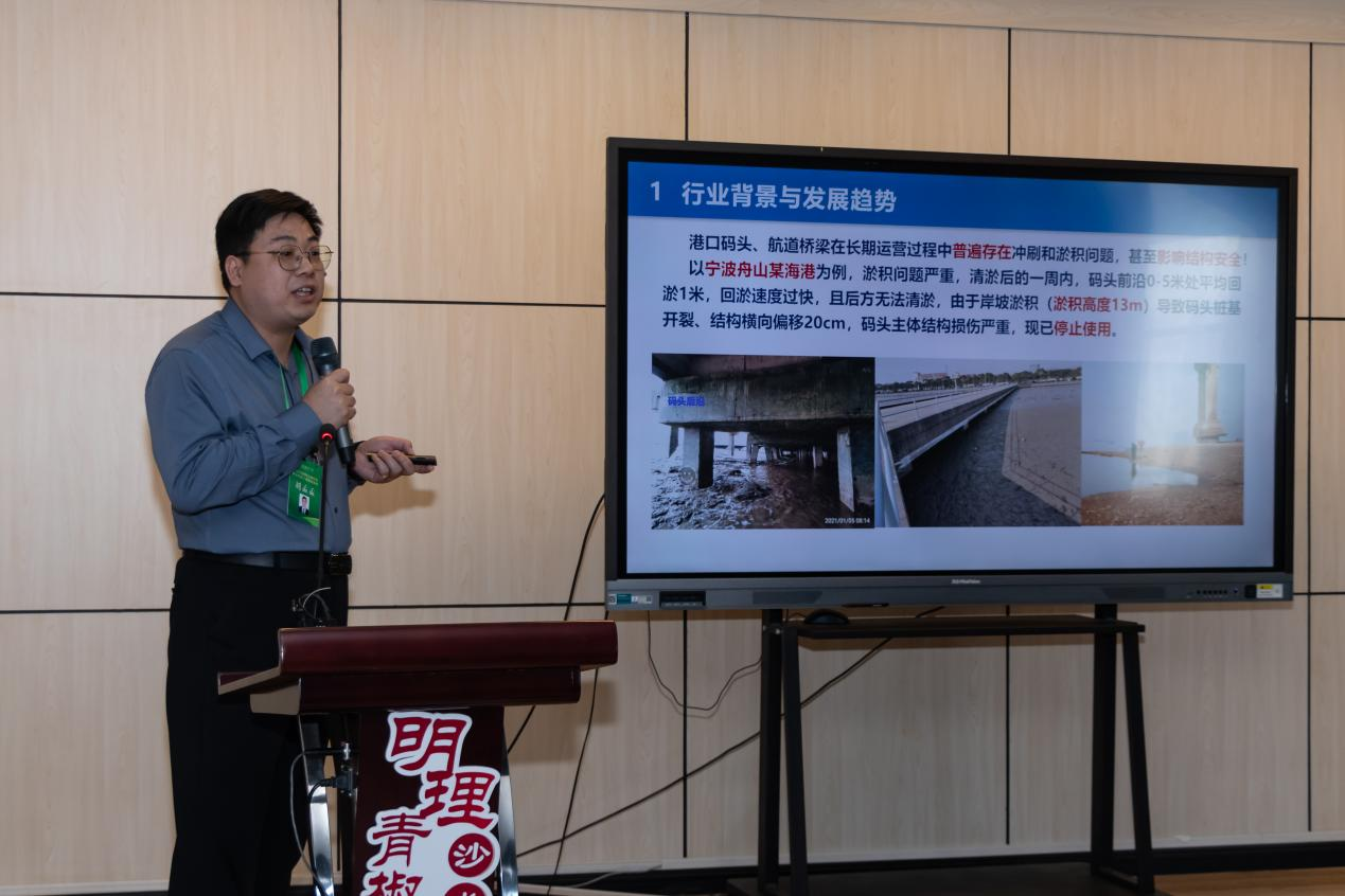 劉孟孟作題為“水工結(jié)構(gòu)智能監(jiān)測設(shè)備研發(fā)與應(yīng)用研究”的報告。他基于水-土介質(zhì)傳熱原理和分布式光纖測溫技術(shù)耦合的水工結(jié)構(gòu)沖淤設(shè)備研發(fā)過程,通過理論分析、數(shù)值仿真和模型試驗,驗證了該技術(shù)的可行性。研發(fā)樣機通過國家計量測試,成品已在寧波舟山港示范應(yīng)用10套。