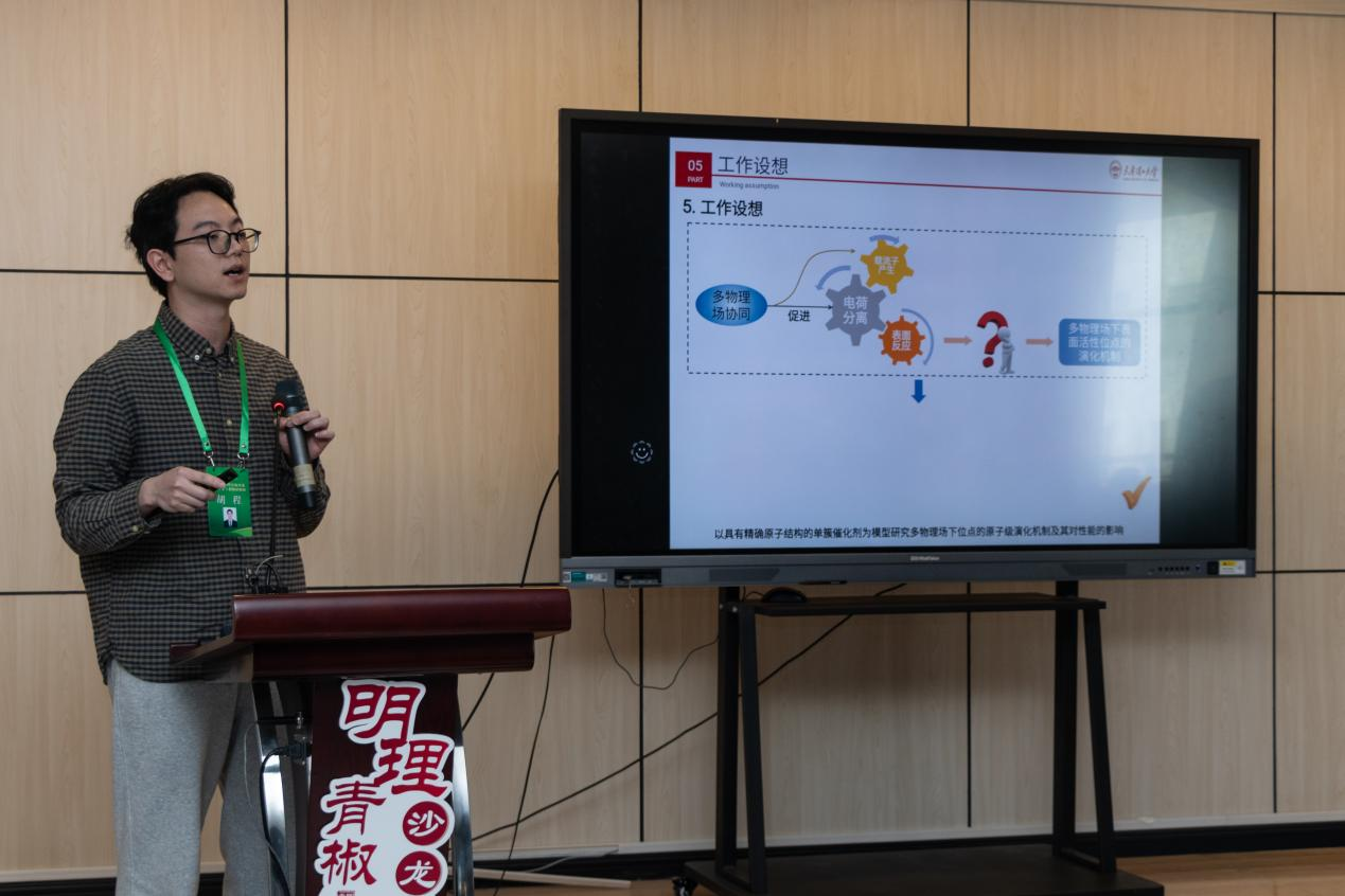 胡程作題為“單簇催化劑的設(shè)計及其多物理場催化性能研究”的報告。他從原子水平研究光、應(yīng)力和電場等多物理場作用下的動態(tài)催化行為,探索其在溫室氣體轉(zhuǎn)化和升級利用方面的應(yīng)用,研究負載型單分散團簇的精確合成方法和微結(jié)構(gòu)調(diào)控策略。