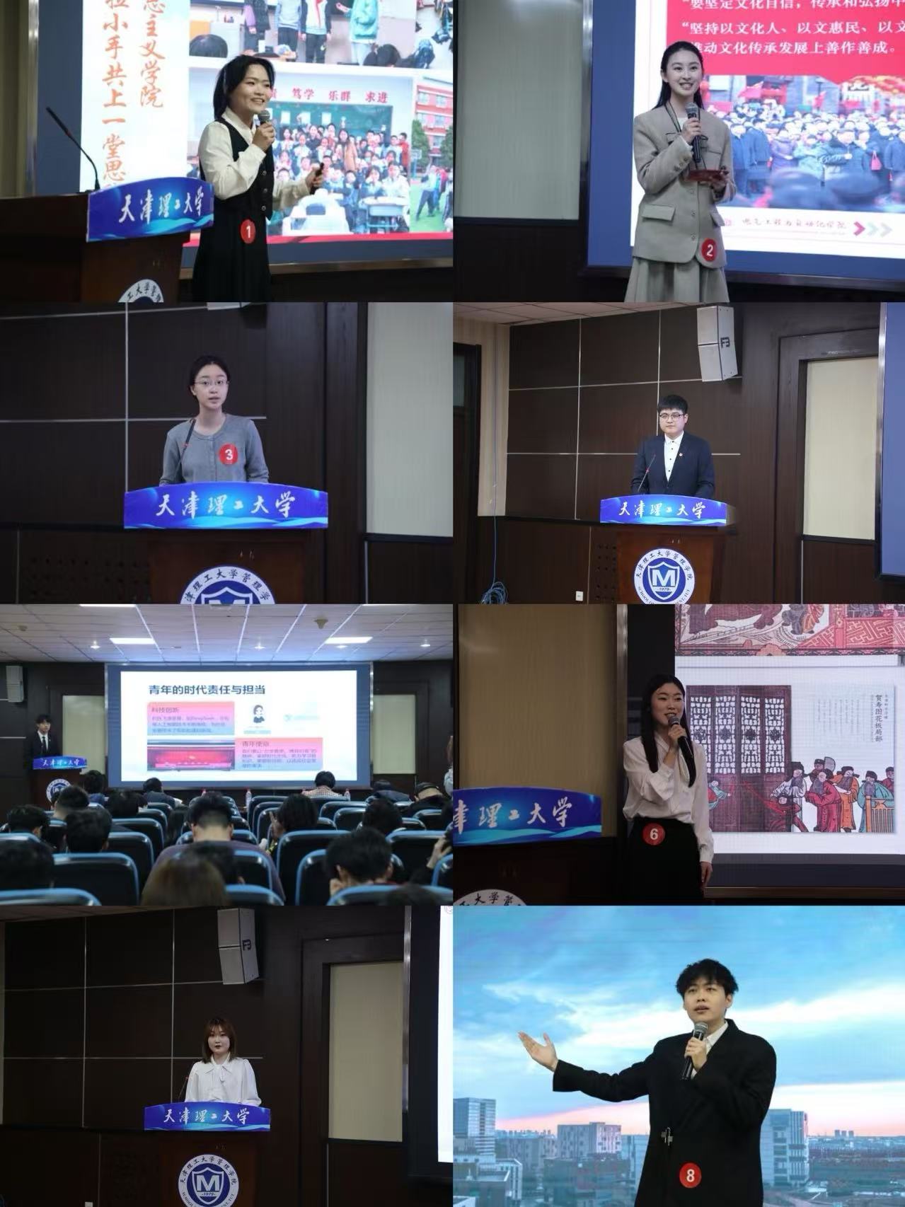 大賽評選出語言類作品一等獎1組、二等獎3組、三等獎4組,文藝類作品一等獎1組、二等獎2組、三等獎3組。最終,管理學院選送的《為有犧牲多壯志,敢教日月換新天》和語言文化學院選送的《津韻非遺 踐行致遠》的作品榮獲一等獎,將代表學校參加教育系統基層理論宣講員風采展示活動。