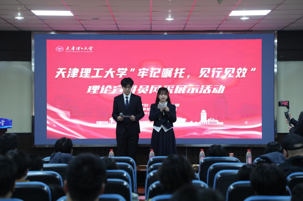 為深入貫徹落實黨的二十屆三中全會精神,認真貫徹習近平文化思想,全面落實習近平總書記視察天津重要講話精神,4月2日,學校舉辦“牢記囑托見行見效”理論宣講員風采展示活動。來自學校各學院的14組參賽作品共36名宣講員,分語言類和文藝類兩個賽道進行現場展示。校黨委副書記許瑞出席活動并講話,師生代表160余人現場觀摩。