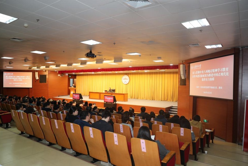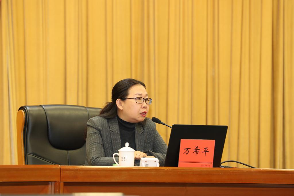 2日下午,學校邀請市委黨校哲學部副主任萬希平教授作“深入貫徹中央八項規(guī)定精神學習教育,以作風建設新成效為推進中國式現(xiàn)代化提供有力保障”的輔導報告。校院兩級黨委理論學習中心組成員、全體處級干部、基層黨支部書記等300余人參加。報告會上,萬希平圍繞“充分認識深入貫徹中央八項規(guī)定精神學習教育重大意義、準確把握中央八項規(guī)定精神內(nèi)涵要義、堅決落實深入貫徹中央八項規(guī)定精神學習教育部署要求”三個方面,對此次學習教育進行了全面系統(tǒng)的輔導和解讀,加深了參會人員對習近平總書記關(guān)于加強黨的作風建設的重要論述和中央八項規(guī)定及其實施細則精神的理解和認識,對深入開展好學習教育具有重要指導意義,對進一步引導廣大黨員干部學思踐悟具有良好促進作用。