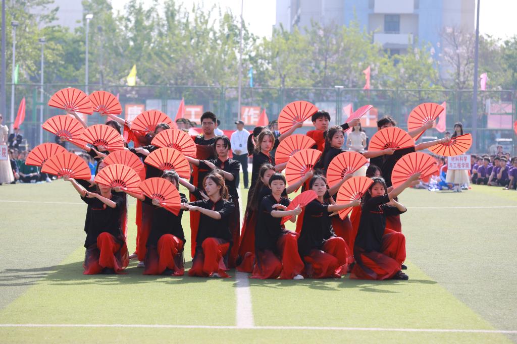 師生群體活動展示中,百人太極扇方陣剛?cè)嵯酀?jì),百柄紅扇翻卷似烈焰奔涌,千重白衣旋舞若銀河倒瀉;體育舞蹈以規(guī)范的動作、精準(zhǔn)的節(jié)奏、優(yōu)雅奔放的風(fēng)格為核心,兼具力量與藝術(shù)之美。長扇舞變幻莫測,搖曳之間風(fēng)采盡現(xiàn),彰顯大國仁愛之范。
