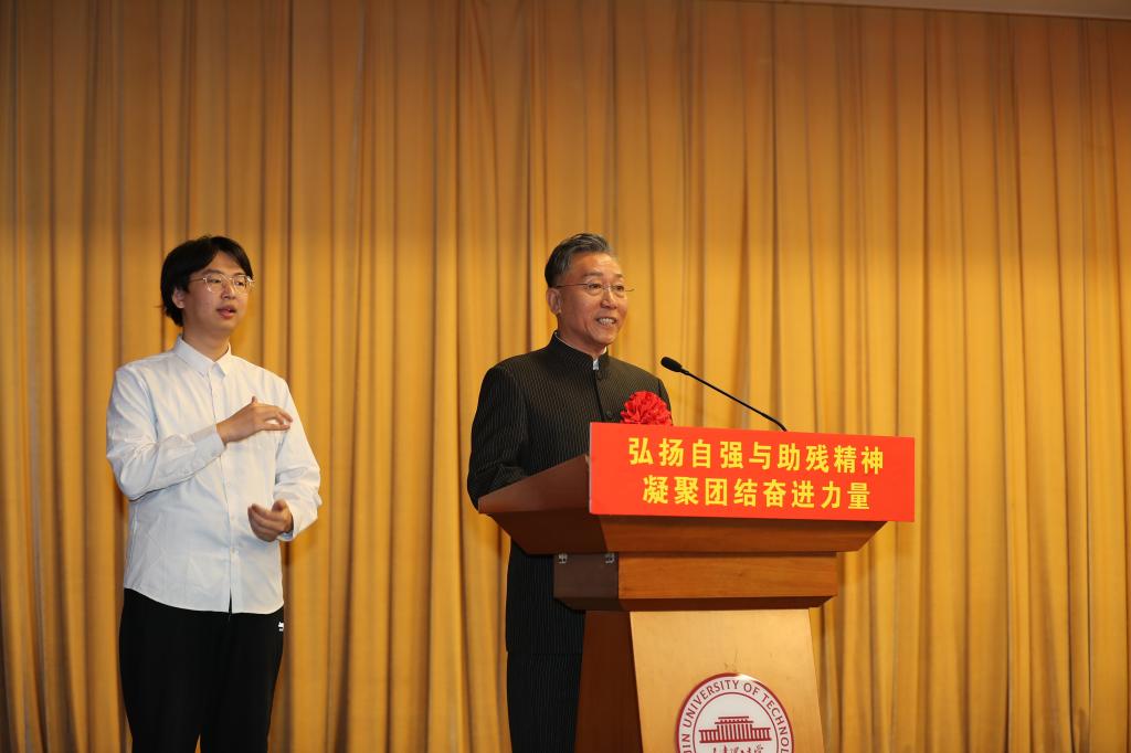 在報告會環節,北京新生命養老助殘服務中心主任唐占鑫,河北承賢健康管理有限公司總經理王磊,我校藝術學院2012屆畢業生、天津吉文傳媒科技有限公司總經理劉瀚文,南開大學環境科學與工程學院資料中心主任卜欣欣,我校聾人工學院教師李子剛等5位全國自強模范、全國殘疾人工作先進集體代表生動地講述了在各自領域自強奮進、扶殘助殘、追求夢想的奮斗故事。他們的感人事跡和精彩分享贏得了現場師生的陣陣掌聲,引發了熱烈反響。