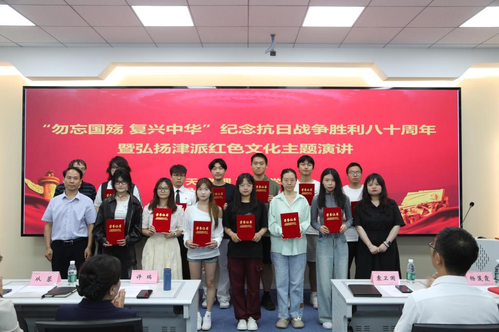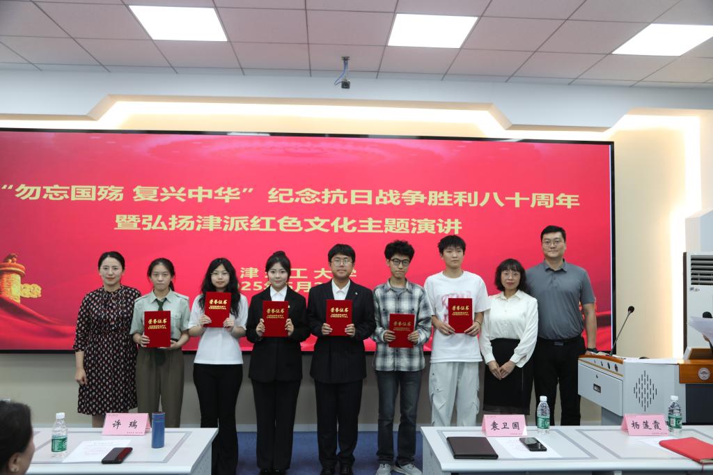 主題演講活動由校團委和馬克思主義學院共同主辦。活動面向全校本學期開設《中國近現代史綱要》課程的33個教學班,旨在對大學生進行愛國主義教育。活動內容突出了“九一八”事變至抗日戰爭勝利期間中國共產黨發揮的中流砥柱作用,展現了在中國共產黨領導下津沽大地涌現出來的典型抗戰事例,進一步弘揚津派紅色文化。復賽共有35組53名同學參加角逐,分別以《津門風骨——抗戰歲月里的精神之光》《蓮花峰上真君子,盤山路里家國情——紀念盤山游擊戰爭》《浴血山河映初心 中流砥柱耀津門》《水樓檐角聽風雷:從津門故里到山河脊梁》《從北大營到平津線——中國共產黨領導下的全民抗戰與津沽壯歌》等題目進行精彩演講,生動講述了中國共產黨人引領津沽大地抗戰的非凡故事,凸顯了中國共產黨在全民族抗戰中的重大貢獻,激發了廣大學生愛黨愛國之情。最終評出一等獎4個、二等獎5個、三等獎7個、優秀獎15個。