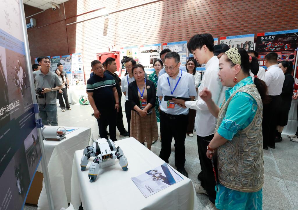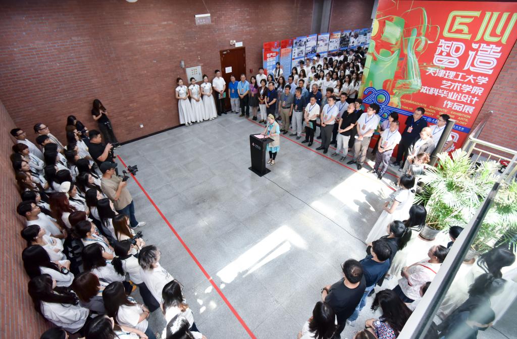 6月3日,藝術學院2025屆本科畢業設計作品展在學校圖書館舉行。天津市鴕鳥墨水有限公司總經理黃強,天津市臻寶堂文化有限公司研發部總監、天津市工藝美術大師趙陽,天津天紡投資控股有限公司副總經理、天津抵羊智造有限公司董事長李華慶,天津大學設計總院文旅產業研究院副院長何知秋,天津芒狗動畫科技有限公司副總經理寇偉,黨委常委、副校長葉寧出席開幕式。相關處室負責同志及藝術學院師生代表參加了開幕式。