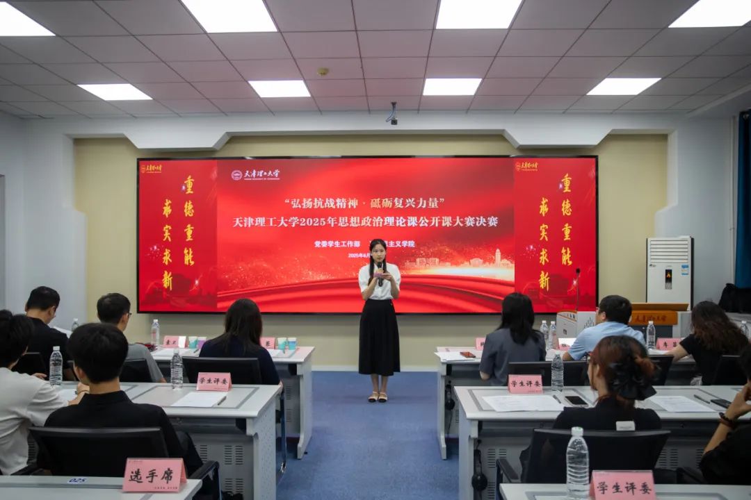 6月27日下午,“弘揚抗戰精神·砥礪復興力量”學校2025年思政公開課大賽決賽在智能思政·紅色全景愛國主義教育教室舉辦。天津音樂學院馬克思主義學院院長韓璐,天津城建大學馬克思主義學院副院長桂錦峰,黨委宣傳部、黨委學生工作部、校團委主要負責同志以及15位學院學生代表擔任評委。馬克思主義學院全體學生觀摩比賽。