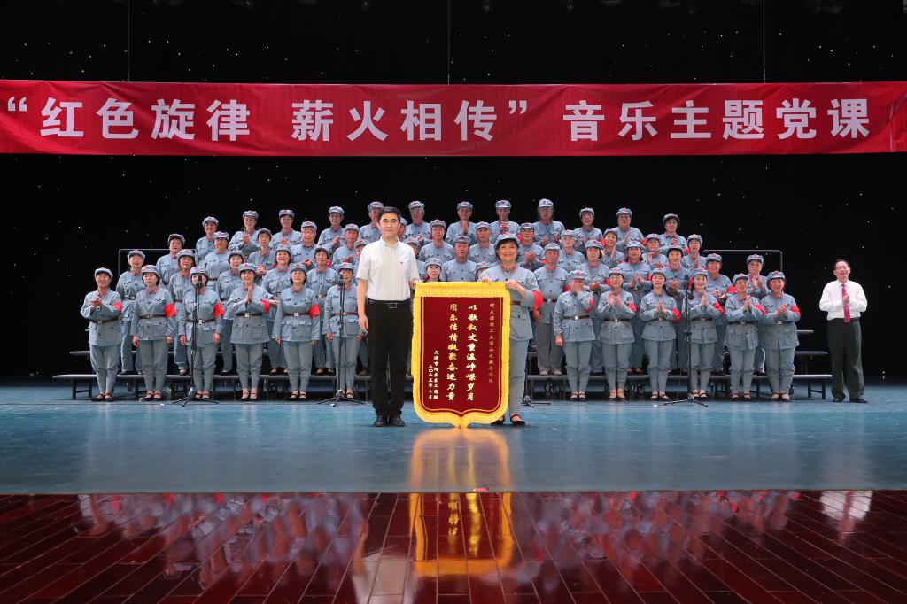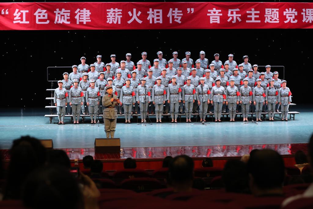 此次主題音樂黨課的主講人為學(xué)校關(guān)工委副主任馬紅健及學(xué)校山之歌合唱團(tuán)。平均年齡74歲的合唱團(tuán)以《長征組歌》中的《四渡赤水出奇兵》《到吳起鎮(zhèn)》《大會(huì)師》三首經(jīng)典歌曲開場。馬紅健結(jié)合歷史和歌曲的創(chuàng)作背景、意義進(jìn)行詳細(xì)講解,現(xiàn)場觀眾跟隨著講解與歌聲,沉浸式進(jìn)入烽火硝煙的時(shí)代,感悟信仰與力量。活動(dòng)中,全體黨員面向黨旗重溫入黨誓詞。李桂山、張嬿老師深情演唱《黨的陽光照耀著祖國》,合唱團(tuán)演唱《保衛(wèi)黃河》。在全場高唱《沒有共產(chǎn)黨就沒有新中國》的歌聲中,音樂黨課圓滿落下帷幕。