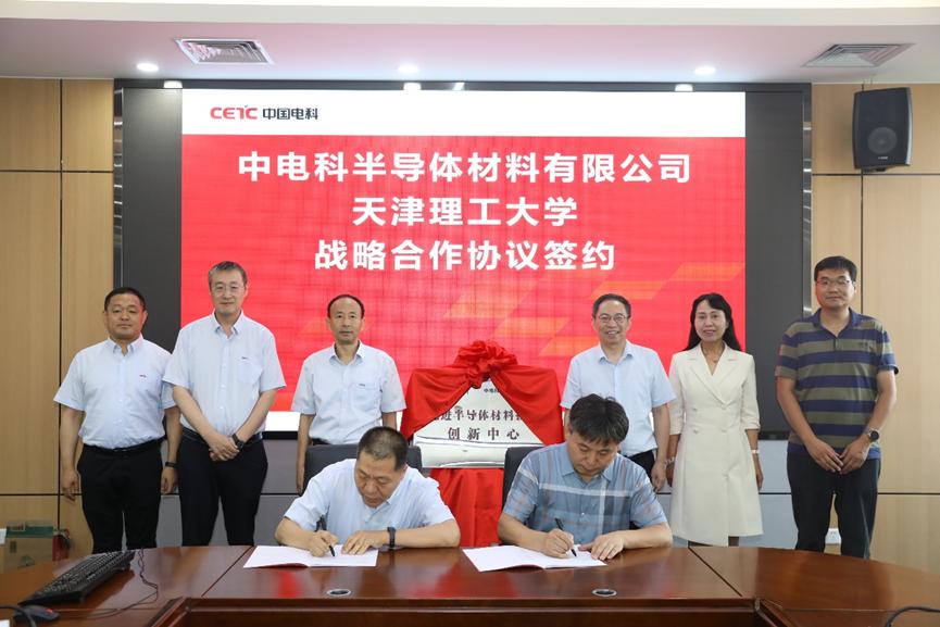 7月21日,校黨委書記、校長練繼建帶隊赴中電科半導體材料有限公司調研交流。雙方就深化半導體材料領域產學研合作達成共識,簽訂戰略合作協議并為聯合創新中心揭牌。中電科半導體材料有限公司黨委書記、董事長鐵斌陪同調研并出席相關活動。