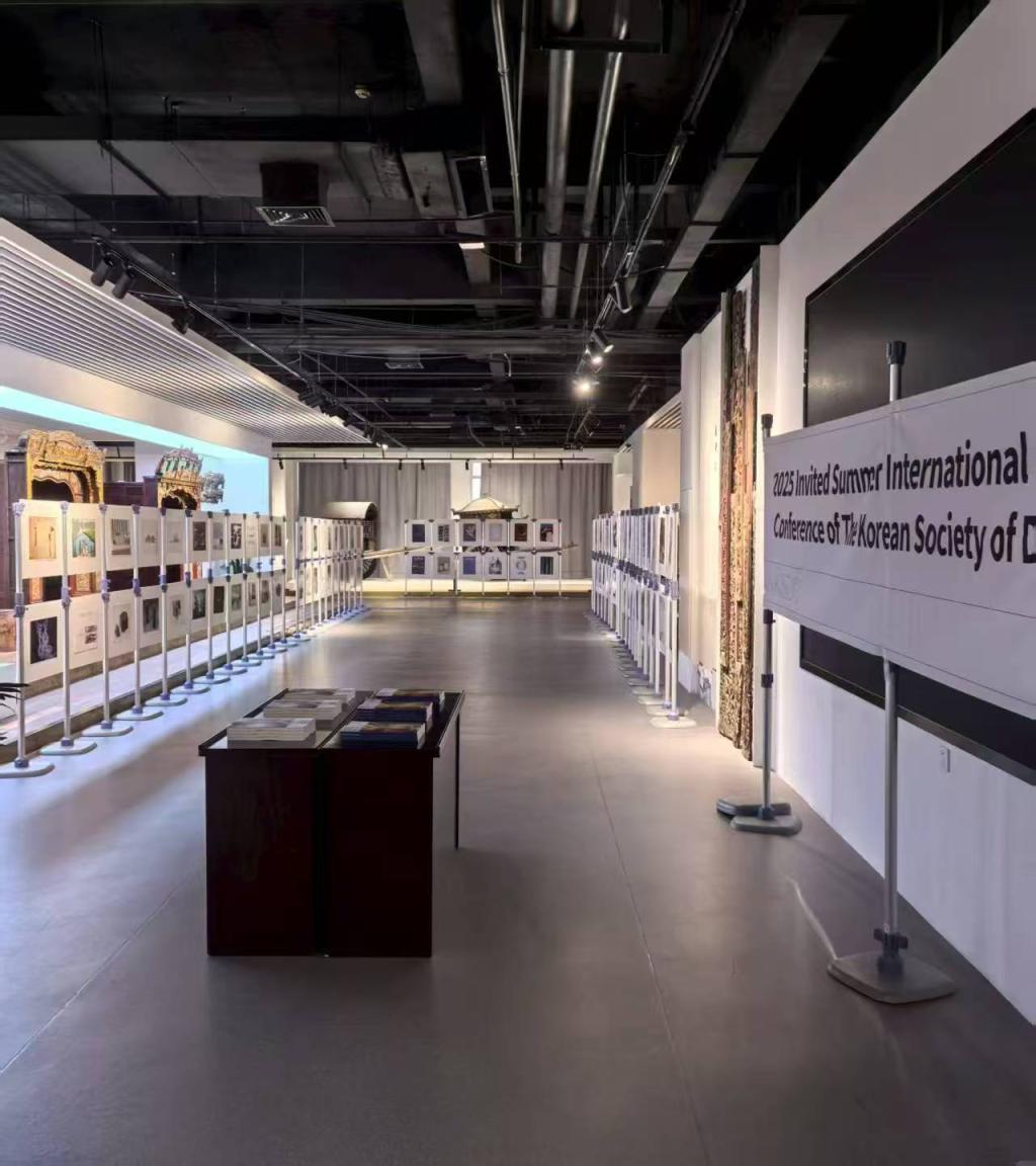 本次交流展展出上百件韓國知名當代藝術家的代表作,涵蓋AI設計、服裝藝術、紡織藝術、數字媒體藝術、時尚等多個領域。同時,來自中國、美國、日本、荷蘭等多個國家的設計師作品參與展出,進一步拓寬了大家的國際視野與交流維度。展覽還特別呈現了韓國藝術家在傳統文化與現代技術融合方面的探索與實踐。其中包括融入韓國傳統元素的現代抽象繪畫作品,體現韓國歷史人文的紡織藝術品,以及利用人工智能和數字技術創造的互動裝置藝術作品。