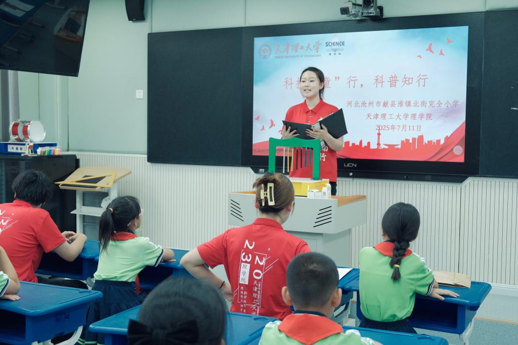 在河北獻縣淮鎮北街完全小學、天津市紀莊子社區,實踐團以實際行動,推動優質科普資源下沉基層,點亮青少年的科學夢想。活動過程中,實踐團采用“科普+”的宣講模式,結合器材演示,化身“發明家”,制作發電儀器,進一步激發青少年對科學的興趣和探索精神。