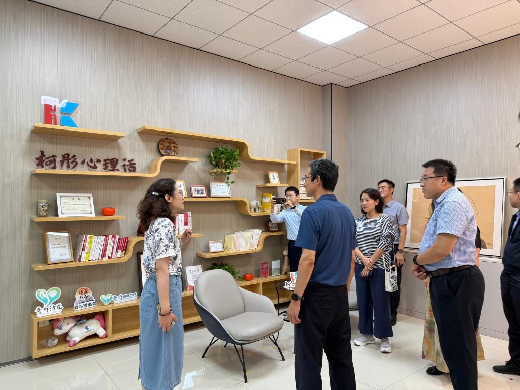 調(diào)研組先后來到我校“一站式”學(xué)生社區(qū)、網(wǎng)絡(luò)思政名師工作室、創(chuàng)新創(chuàng)業(yè)學(xué)院等地進(jìn)行了實(shí)地考察。在明理家園“一站式”學(xué)生社區(qū)南苑綜合服務(wù)中心,調(diào)研組詳細(xì)觀摩了幸福文化體驗(yàn)中心“一廊三室”育人空間,聽取了學(xué)校關(guān)于社區(qū)“領(lǐng)航鑄魂”“社區(qū)藍(lán)圖”“力量引育”“數(shù)字賦能”四項(xiàng)工程的思路匯報(bào)與具體做法,并就社區(qū)黨建、文化育人、智慧服務(wù)等方面與工作人員進(jìn)行了深入交流。