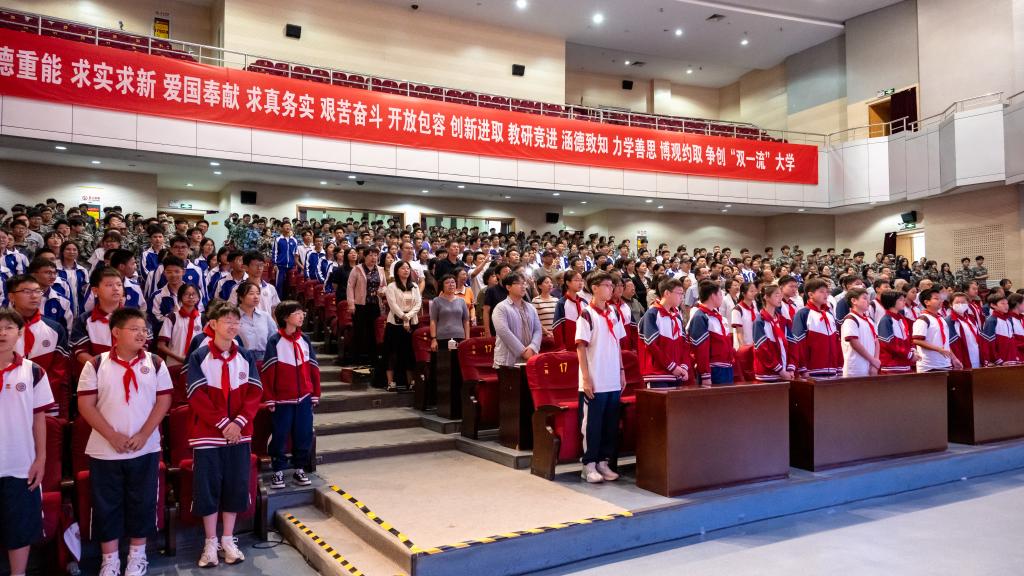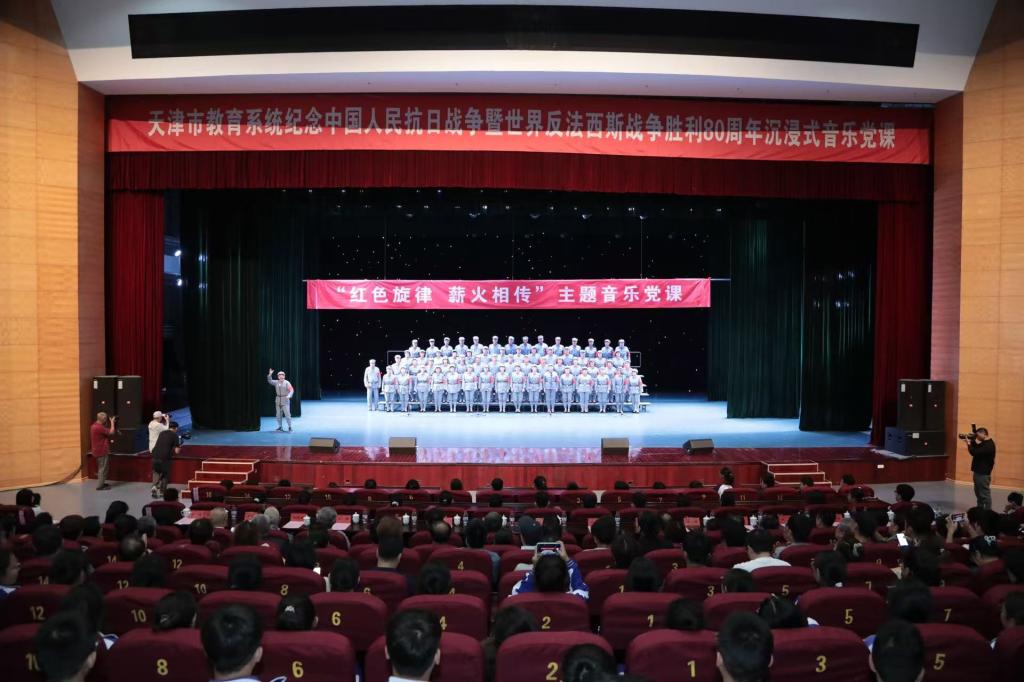 9月17日下午,市教育兩委、市關(guān)工委、市教育系統(tǒng)關(guān)工委在我校舉辦“紅色旋律 薪火相傳”主題音樂黨課,紀(jì)念中國人民抗日戰(zhàn)爭暨世界反法西斯戰(zhàn)爭勝利80周年,緬懷革命先烈,激發(fā)愛國情懷,弘揚(yáng)偉大抗戰(zhàn)精神。市關(guān)工委常務(wù)副主任劉長喜、陳浙閩,市教育兩委二級巡視員王戈,市教育系統(tǒng)關(guān)工委主任劉十洲,校黨委書記、校長練繼建,校黨委副書記許瑞和《支部生活》雜志社、河?xùn)|區(qū)教育局、市第四十五中學(xué)、天津師范大學(xué)附屬實驗學(xué)校等有關(guān)負(fù)責(zé)同志出席活動。