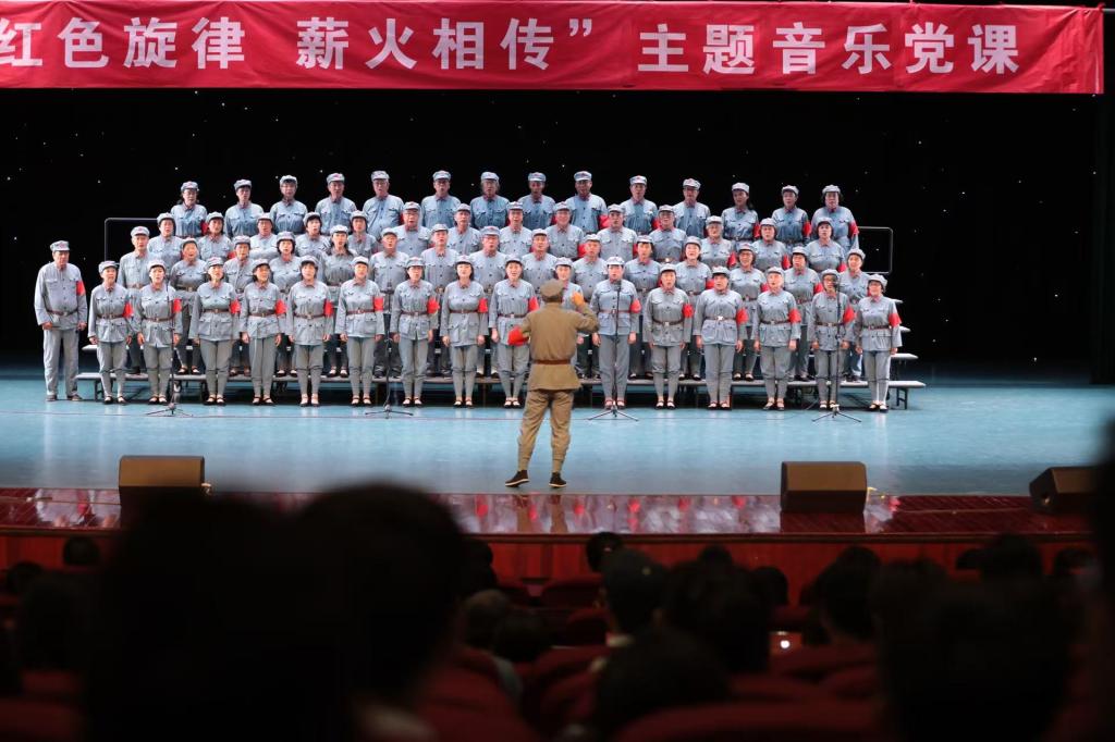 由70位退休教師組成的學(xué)?!吧街琛焙铣獔F(tuán),穿插演唱了《延安頌》《保衛(wèi)黃河》等7首膾炙人口的經(jīng)典革命歌曲,將廣大師生的思緒帶入戰(zhàn)火紛飛的革命年月,穿越歷史的長河,喚起青年學(xué)子對革命理想的執(zhí)著追求,將主題音樂黨課推向高潮。