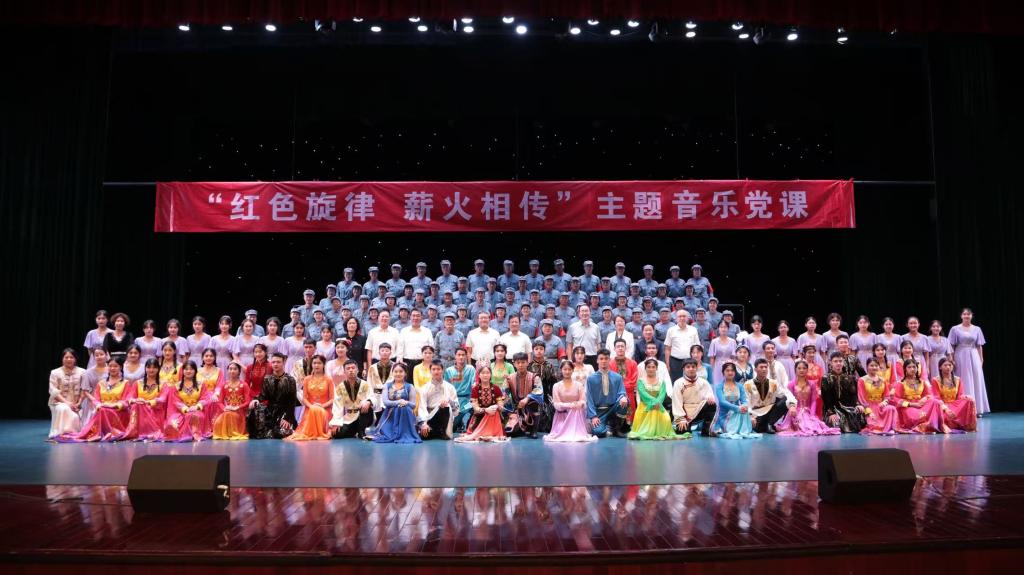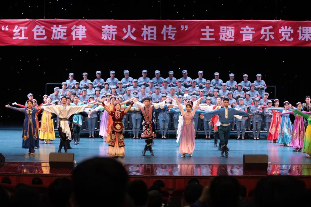 主題音樂黨課在全場齊唱《沒有共產(chǎn)黨就沒有新中國》和市第45中學(xué)新疆班的同學(xué)們表演的民族舞蹈《盛世歡歌》中落下帷幕。主題音樂黨課不僅是一次革命歷程的回顧、紅色旋律的重溫,更是一堂生動的沉浸式思政課。廣大青年學(xué)子紛紛表示,要把對黨和祖國的無限熱愛,轉(zhuǎn)化為使命感和責(zé)任感,用優(yōu)異的成績續(xù)寫時代華章,為實現(xiàn)中華民族偉大復(fù)興的中國夢而努力奮斗。