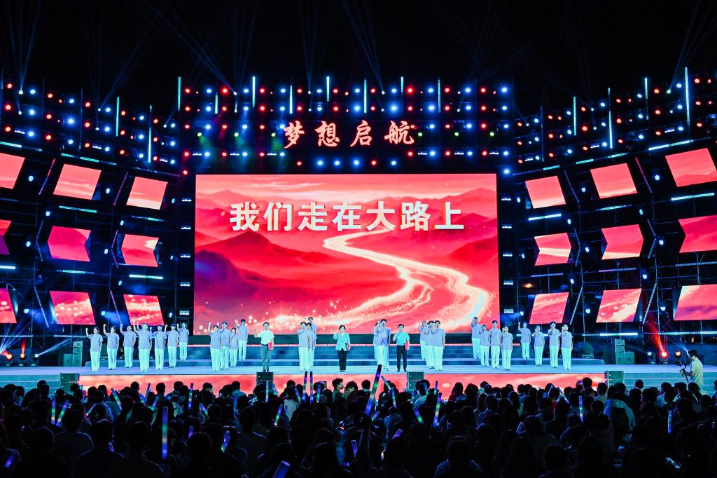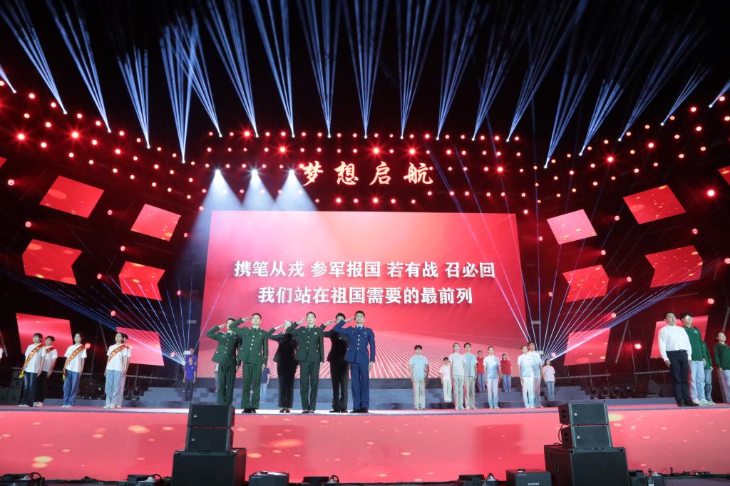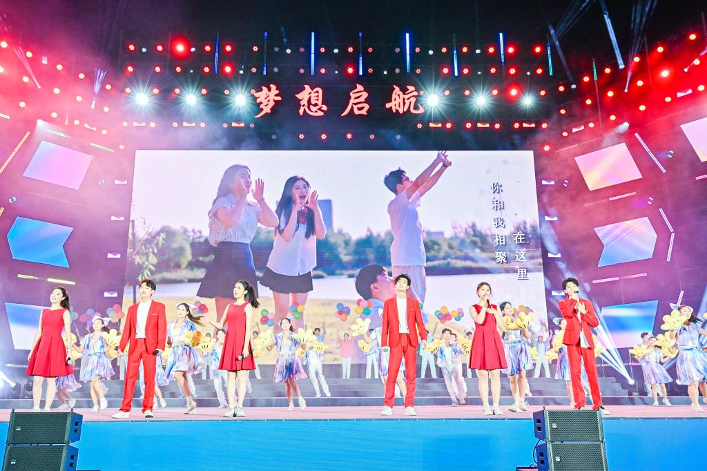 歌曲聯(lián)唱環(huán)節(jié),《不要慌,太陽下山有月光》《熱血燃》等青春歌曲接連唱響。天理學(xué)子用充滿力量的歌聲與富有活力的舞臺表現(xiàn),彰顯了新時(shí)代青年不畏挫折、敢想敢為、昂揚(yáng)奮進(jìn)的青春風(fēng)采。