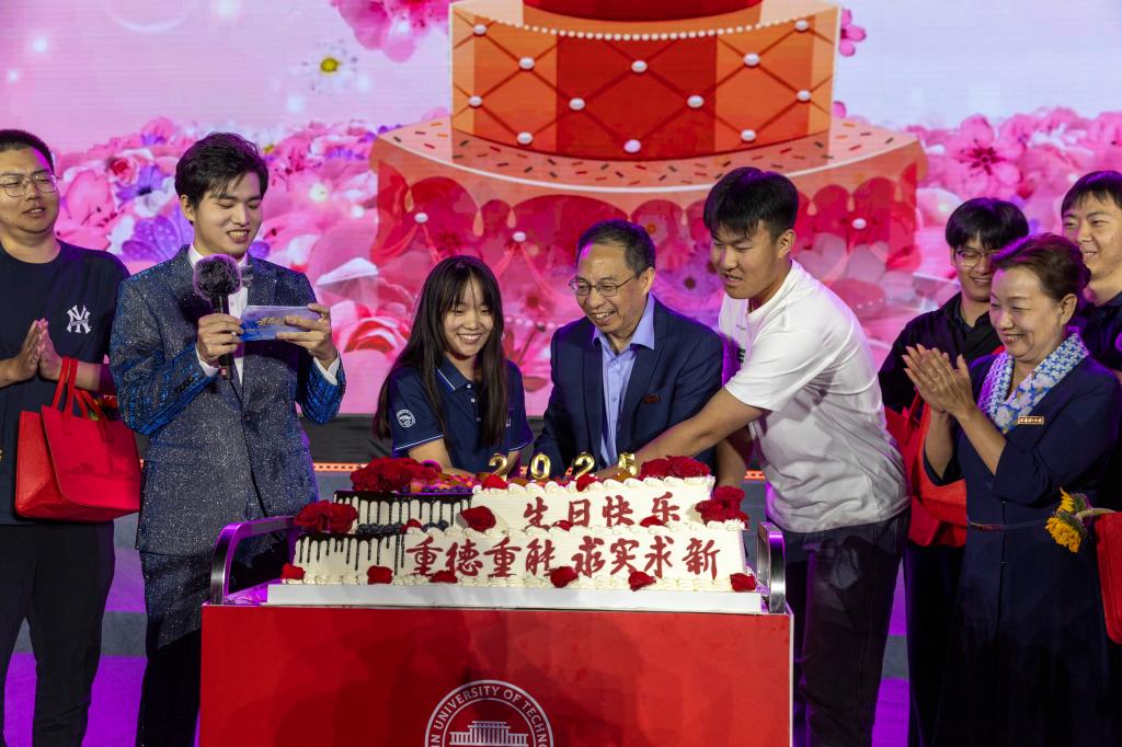 晚會(huì)特別設(shè)置了驚喜而又溫馨的生日環(huán)節(jié),校領(lǐng)導(dǎo)為9月17日當(dāng)天過生日的2025級新生送上真摯的祝福和精心準(zhǔn)備的生日禮物,并與他們一同切分生日蛋糕,現(xiàn)場洋溢著溫暖與喜悅的氛圍。天理之美,美在育人——愛滿天下,樂育英才,踐行興學(xué)強(qiáng)國的使命;天理之美,美在德能——以德行立身,憑才能致遠(yuǎn),鐫刻精神底色;天理之美,美在實(shí)新——秉持求真務(wù)實(shí),開拓創(chuàng)新之精神,指引前行方向;天理之美,美在青春的昂揚(yáng)——朝氣蓬勃的身影,敢闖敢為的姿態(tài),彰顯無限可能。廣大天理學(xué)子與學(xué)校同前行、與祖國共奮進(jìn),以奮斗之筆書寫無愧于時(shí)代的青春華章。