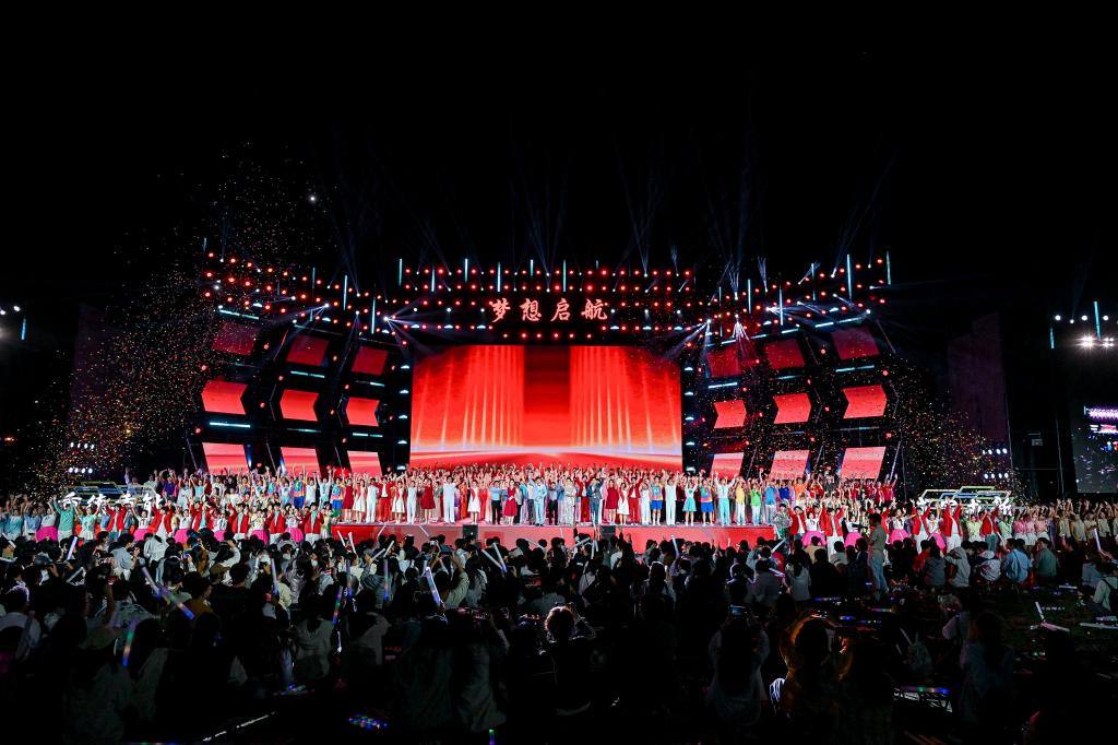 9月17日,“青春正當(dāng)燃”學(xué)校第二十一屆校園文化藝術(shù)節(jié)開幕式暨“夢想啟航”2025迎新晚會(huì)在學(xué)校操場舉行。校領(lǐng)導(dǎo)練繼建、許瑞、陳勝勇、葉寧、王鐵、馮驊、蘇榮華出席。相關(guān)部門、學(xué)院、研究院主要負(fù)責(zé)人,教師代表、校友代表與2025級全體新生共同觀看這場青春盛宴。中國大學(xué)生在線、天理青年等多個(gè)平臺同步直播,吸引5萬名觀眾線上同步觀看,共同見證天理新生的啟航時(shí)刻。