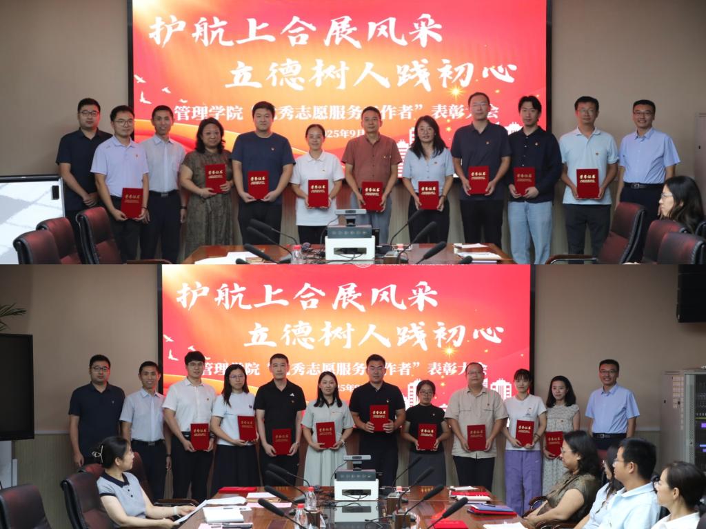 近日,為落實立德樹人根本任務,厚植師生員工的家國情懷,管理學院舉辦“優秀志愿服務工作者”表彰會暨教師節座談會。黨委常委、副校長蘇榮華出席會議。黨委組織部、黨委教師工作部、基建處負責同志,管理學院領導班子成員、暑期服務上海合作組織天津峰會的社區志愿服務黨員教師代表和青年教師代表參加會議。