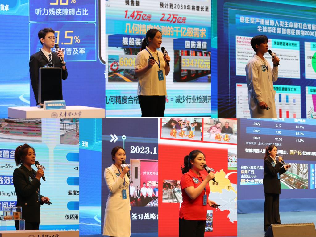 參加爭霸賽的7個項目團隊聚焦低空經濟、人工智能、生態環境等領域的產業痛點問題,圍繞項目概況、技術產品、市場分析、商業模式等維度進行精彩展示,評委們結合項目產品與服務、可持續發展能力等內容與團隊進行交流。經過激烈角逐,來自材料科學與工程學院的項目《理晶圖治——國內領先的溴化鑭晶體制備》、馬克思主義學院的項目《“實踐思政”育人先行者——基于CIPP模型對實踐教學賦能思政課提質增效的策略研究》獲得金獎;來自計算機科學與工程學院的項目《航纜智行——基于3D掃描重建技術的民機線纜敷設質量評估系統》、機械工程學院的項目《睿馳疾手——高速低振分揀機器人締造者》獲得銀獎;來自環境科學與安全工程學院的項目《玉凈魔方——下一代污水脫氮除碳技術的領跑者》、聾人工學院的項目《突破溝通邊界——智能手語雙向互譯系統》、管理學院的項目《夢舟共濟——基于新型折益背包氣囊船的一體化城市安全治理體系方案研究》獲得銅獎,彰顯了天理青年敢為人先、科創報國,為發展新質生產力增勢賦能的理想抱負。