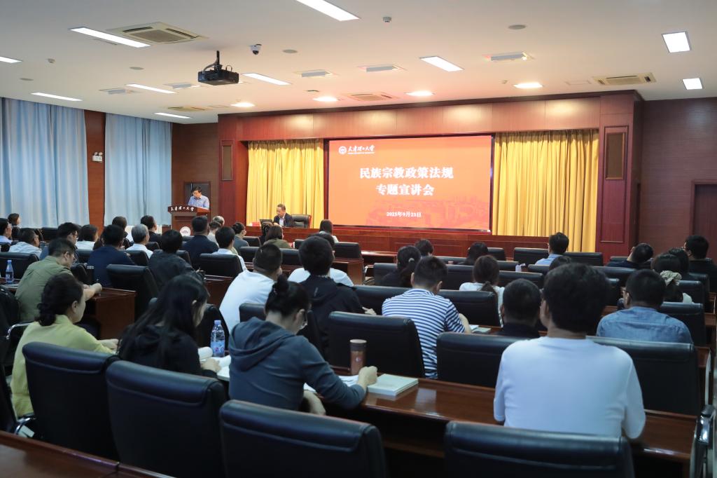 據悉,此次報告會是我校2025年民族團結進步宣傳月暨民族宗教政策法規學習月系列活動之一,學校將把宣講工作與民族團結進步宣傳月、專項工作干部培訓、統戰人士培訓班等內容相結合,開展多形式、分層次、全覆蓋的常態化宣講活動,切實引導全校各族師生鑄牢中華民族共同體意識,為推進中華民族共同體建設貢獻天理力量。