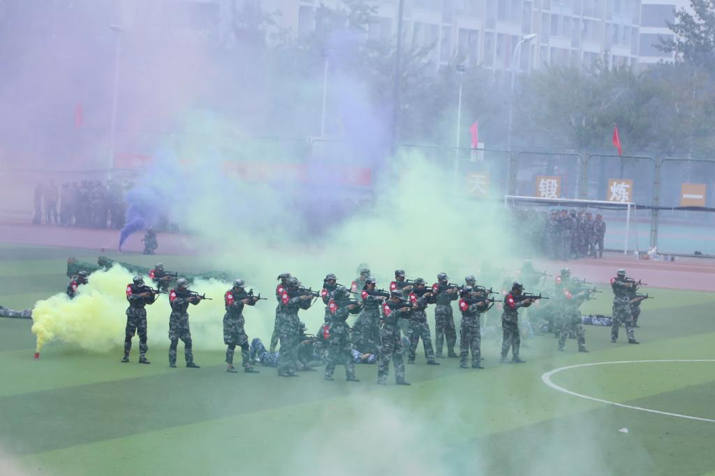 “一日生活制度”科目表演中,學(xué)子們嚴(yán)格遵循軍營規(guī)范,從隊伍集合到各項日常訓(xùn)練,動作整齊劃一,將嚴(yán)謹(jǐn)?shù)募o(jì)律意識融入每一個細(xì)節(jié)。男子警衛(wèi)拳及海軍旗語表演鏗鏘有力,連貫的招式展現(xiàn)出扎實的訓(xùn)練功底。戰(zhàn)場綜合演練行動敏捷,策略精湛;應(yīng)急棍術(shù)表演鏗鏘有力,剛勁沉穩(wěn),充分彰顯了新時代青年的果敢剛強(qiáng)及豪邁氣概,為本次成果匯報畫上圓滿句號。