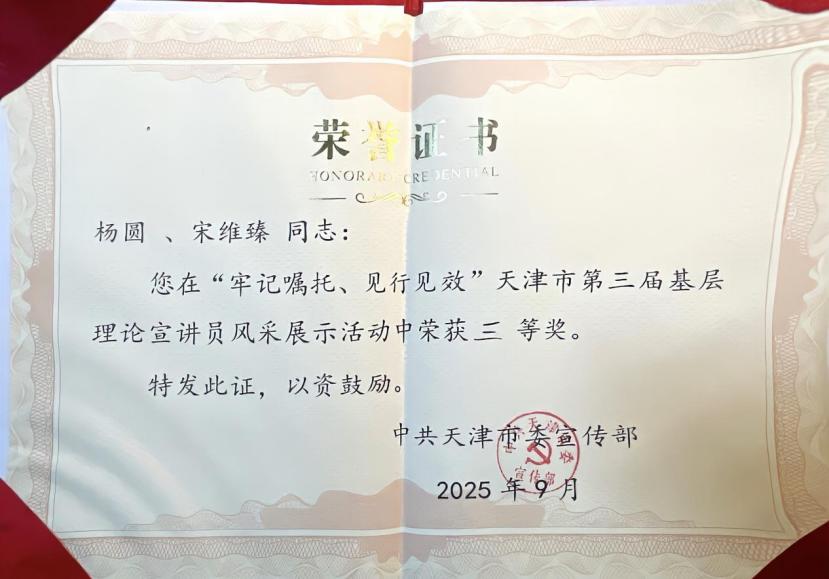 近日,學校語言文化學院2022級英語專業學生楊圓、宋維臻,在“牢記囑托、見行見效”天津市第三屆基層理論宣講員風采展示活動中取得佳績,其文藝類作品《津韻非遺 踐行致遠》憑借創新性的宣講形式與深刻的理論內涵榮獲三等獎。