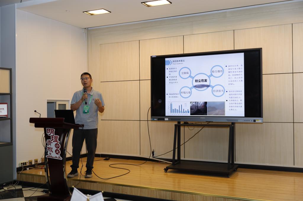 任偉成作“泡子控塵技術”報告。該技術以氣體為單一動力源,替代了現有依賴水性泡沫、細水霧等多動力源的復雜制備工藝。由于采用單因素制泡方式,可穩定生成高質量泡體,控塵效率與效果顯著提升。該技術同時實現了制備過程的小型化、定量化與智慧化,具備良好的推廣應用價值。