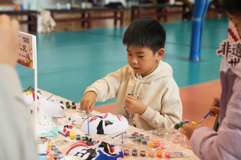 在國際美食攤位與非遺文化體驗區,來自俄羅斯、塔吉克斯坦、秘魯、馬來西亞等8個國家的留學生準備了各具特色的家鄉美食,讓師生和孩子們不出校門便能品嘗“世界味道”。充滿中國韻味的京劇臉譜繪畫、典雅精致的漆扇制作、巧思妙構的竹編風鈴等非遺體驗項目,也吸引了大量小朋友動手參與。活動還設置了拍照打卡區,現場人員沉浸式感受中華優秀傳統文化的獨特魅力和異域風情。