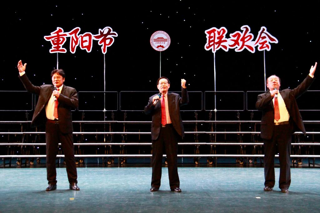 學(xué)校相關(guān)學(xué)院和部門的主要負(fù)責(zé)同志、離退休老同志代表和學(xué)生代表參加活動。聯(lián)歡會圍繞著快樂、溫暖、感人、振奮的元素,呈現(xiàn)出濃濃的尊老敬老愛老氛圍及愛國愛校情懷。