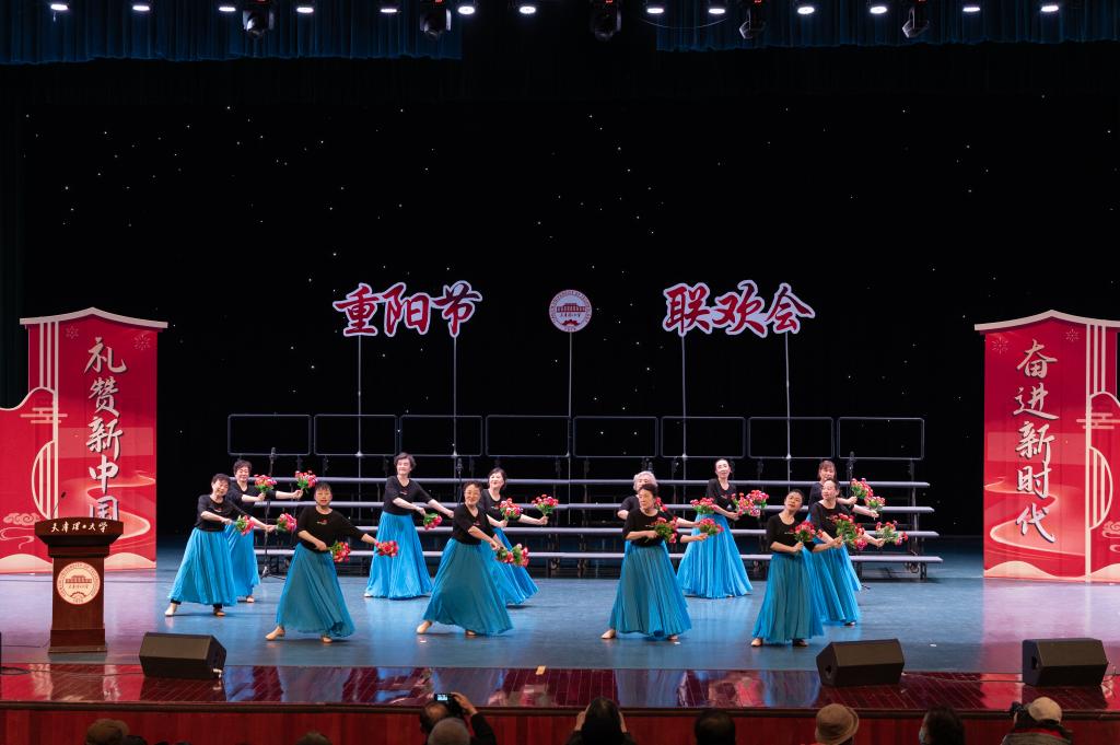 聯(lián)歡會上,離退休老同志精心準(zhǔn)備的節(jié)目精彩紛呈,演員和觀眾情緒高漲。舞臺上有走下講臺的老教授,有走出實驗室的老專家,有離開工作崗位的老領(lǐng)導(dǎo)和各級管理人員,大家通過在學(xué)校各社團(tuán)的活動又恢復(fù)了青春,獲得了健康。大合唱、小合唱、獨唱、詩朗誦、太極功夫扇、風(fēng)采展示、舞蹈等節(jié)目競相展示,我校“津今有樂”相聲社的學(xué)生也表演了精彩的快板書,盡顯全校師生對中華民族敬老愛老優(yōu)良傳統(tǒng)的美好傳承。舞臺下也時時爆發(fā)出陣陣喝彩和掌聲,觀眾們紛紛舉起手機(jī)、相機(jī)記錄下這美好時刻。